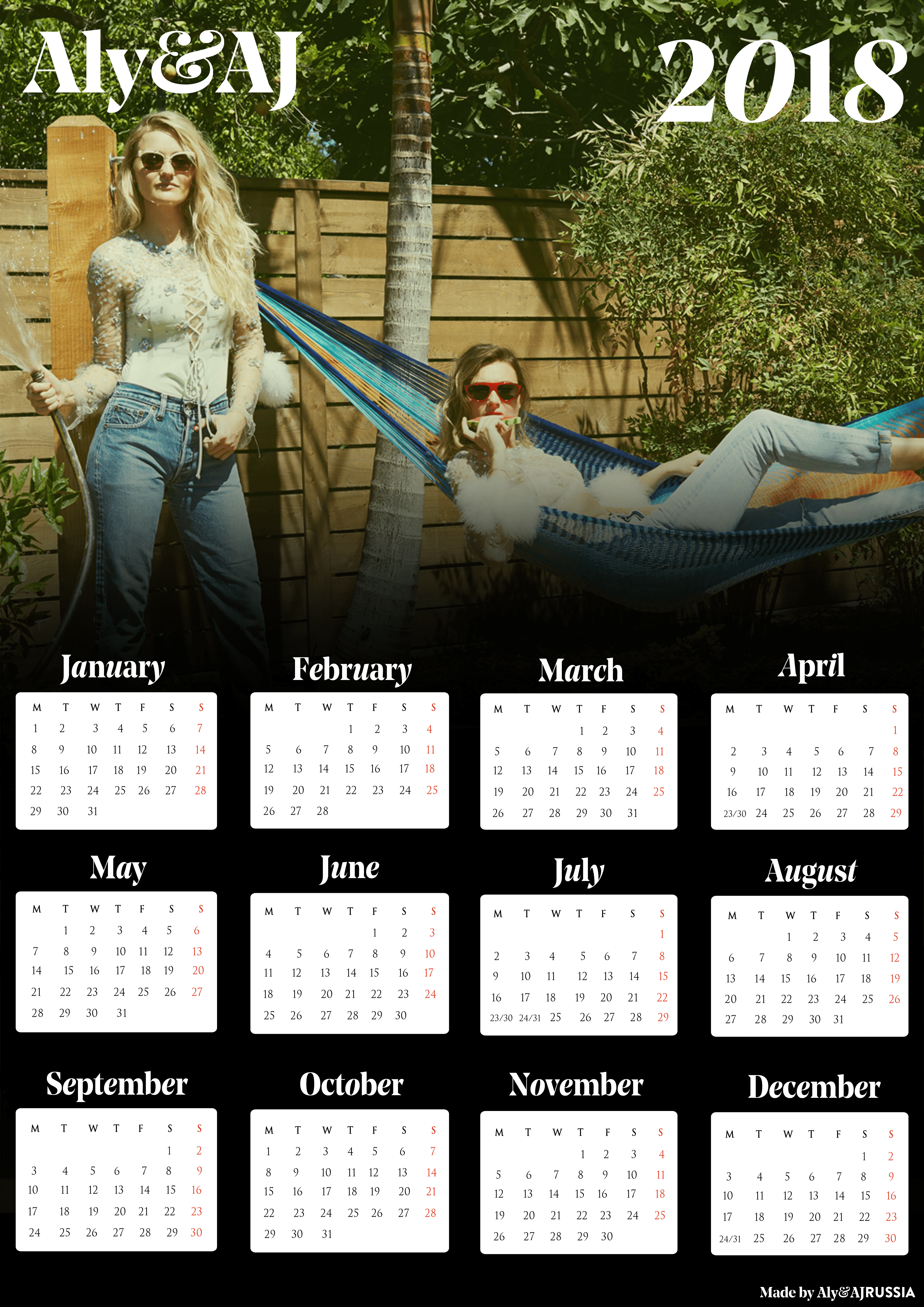 Description: Here, you can download some beautiful Aly & AJ A5 calendars you to have a chance to print them and pin to a wall. You can choose any one of the eight you see in this section. Hope you love them and would use them all the next upcoming 2018.